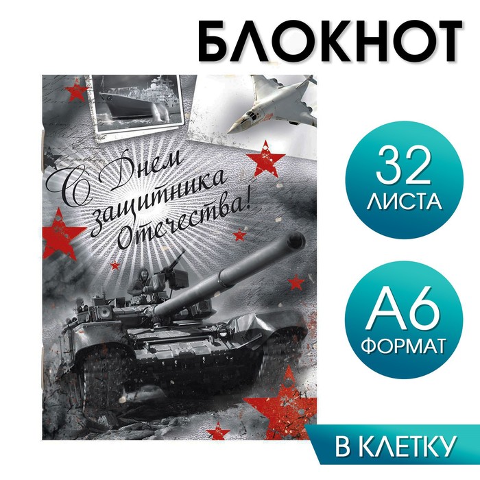 Блокнот «С Днём защитника Отечества» на скрепке, А6, 32 листа
