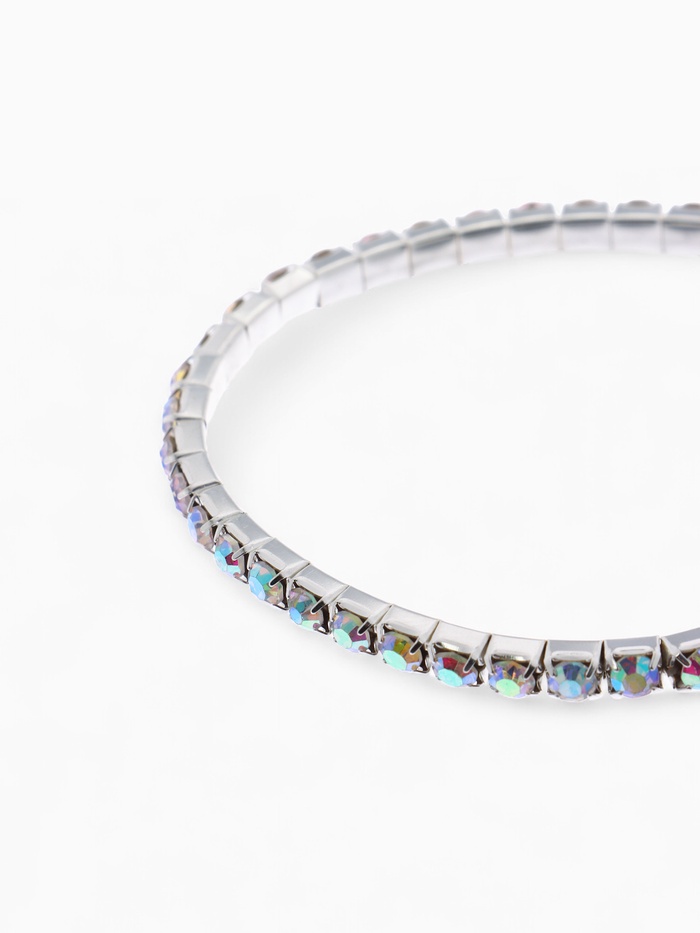 Браслет со стразами "Лёд" 1 ряд, цвет радужный в серебре, 4 мм, d=7см