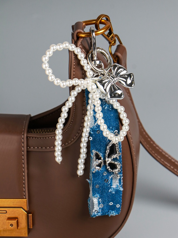 Этот джинсовый брелок с жемчужным бантом и бабочкой — элегантный акцент для ваших ключей. Универсальный дизайн делает его идеальным подарком на 1 Сентября или 8 Марта, а также стильным повседневным аксессуаром.
