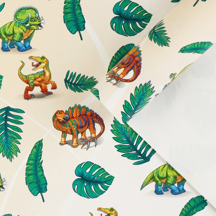 Бумага упаковочная глянцевая «Динозаврики», 70 × 100 см (10 шт)