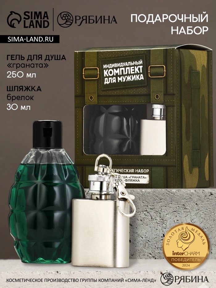Чистое счастье Мужской набор гель для душа Граната и брелок фляжка_зеленый