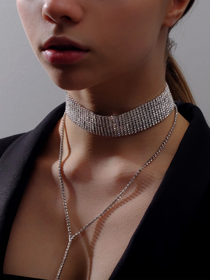 Этот чокер — воплощение грации и искристой свежести, который подчеркнёт вашу индивидуальность и внесёт светлую нотку в любой наряд.
