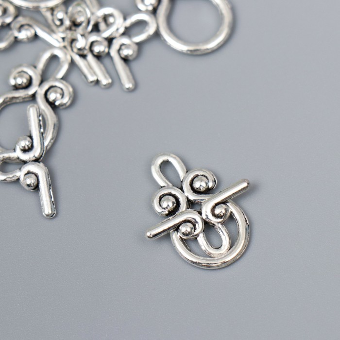 Декор металл для творчества замочек "Шарики и изгибы" серебро 1428M012 2х1,2 см (12 набор)