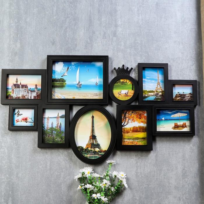 Фоторамка пластик на 10 фото 10х10, 10х15, 13х18, 15х20, 20х25 см "Корона" чёрная 45х80 см.