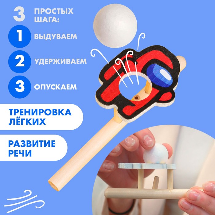 Тренажёр для дыхания выполнен из дерева. Ребёнок может тренировать лёгкие ежедневно, чтобы улучшать результаты.