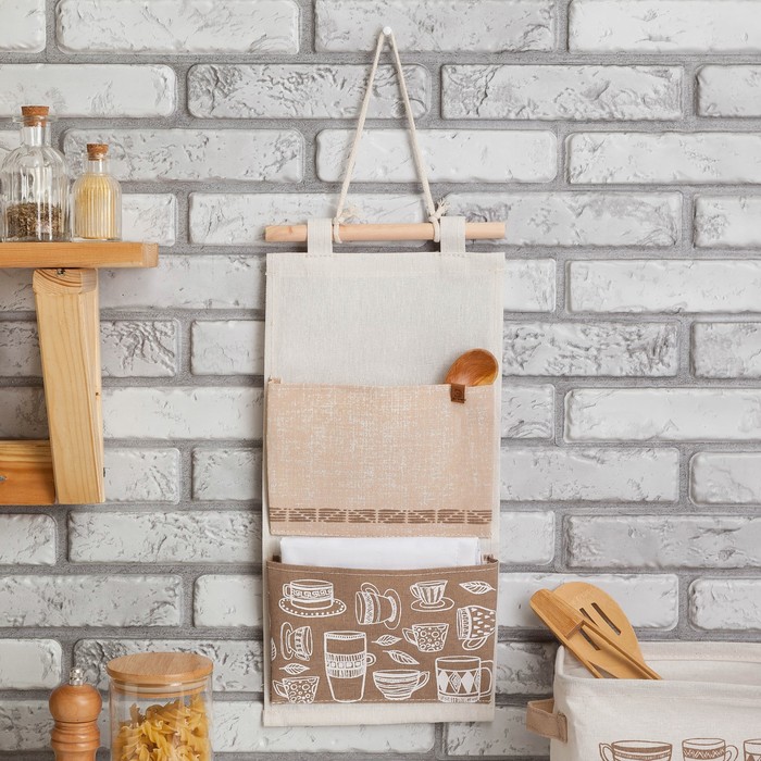 Кармашек текстильный "Кружки" 2 отделения, 41х20 см. Вид упаковки: Пакет. Декоративные элементы: без элементов. Для кого: Для женщины. Количество отделений: 2. Коллекция: Cup of tea. Комплектация: Текстильный кармашек. Материал: Искусственный лён. Набор: Нет. Назначение: Взрослым. Размер: 41 см x 20 см. Размер упаковки: 44 см x 21 см x 1 см. Страна производителя: Китай. Цвет: Бежевый, Коричневый. ---.(4624841)