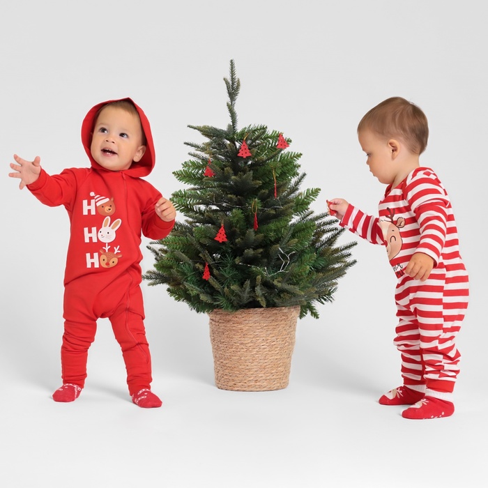 Комбинезон с капюшоном Крошка Я «Новогодние зверята», рост 62-68 см, цвет красный