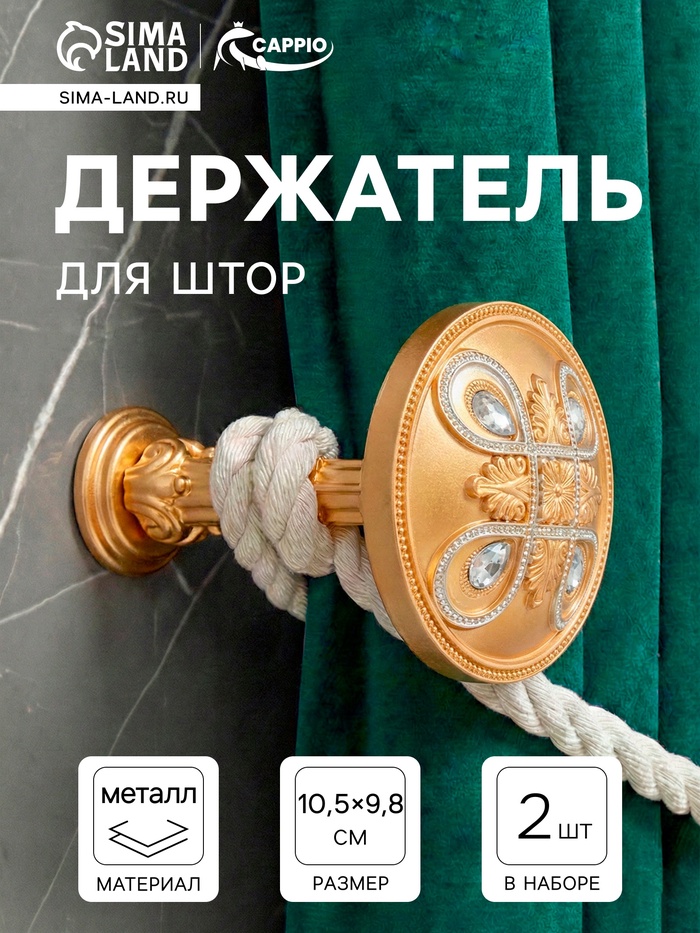Держатели для штор KS033 золотые с серебром, 2 шт. — решение для настенного крепления занавесок любого типа. Диаметр составляет 98 мм.