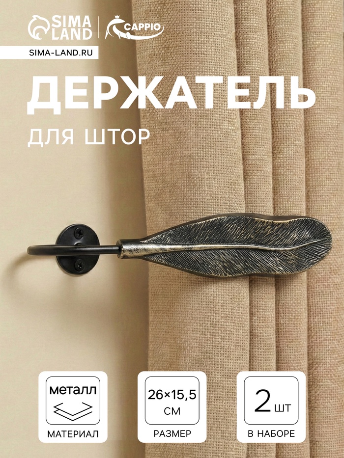Крючок для штор CAPPIO KS040, цвет черный с золотом, набор 2 шт