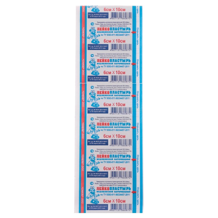 Пластырь медицинский бактерицидный, р-р 6*10 см. (8 шт)
