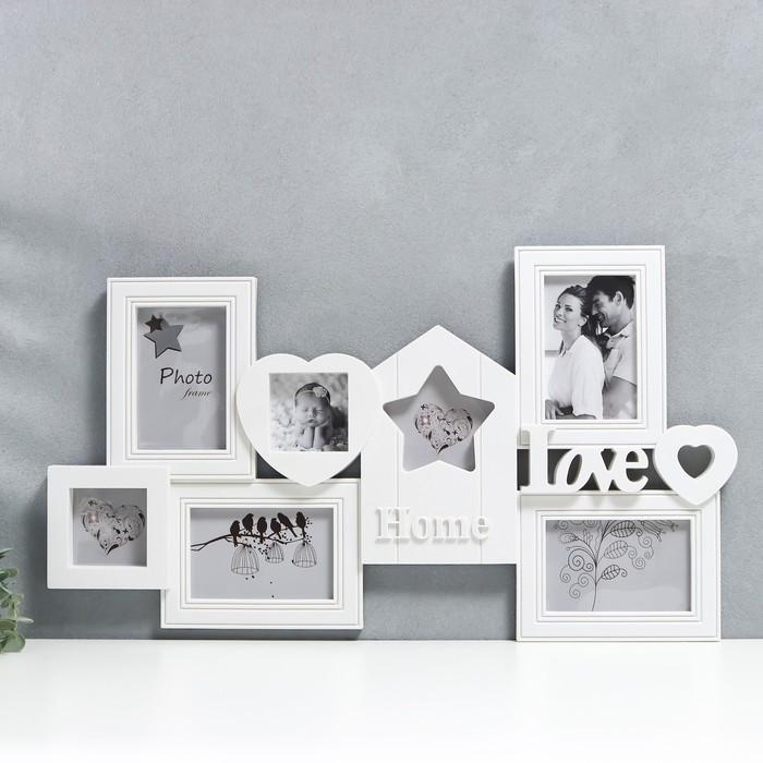 Мультирамка пластик "Home&Love" на 7 фото, цв. белый (пластиковый экран)