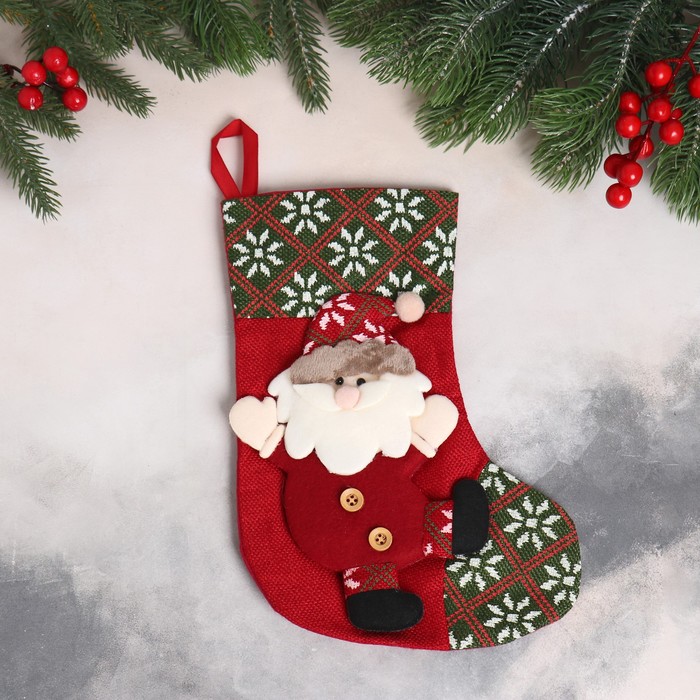 Мягкая подвеска "Носок - весёлый Дед Мороз" 18х27 см, красный