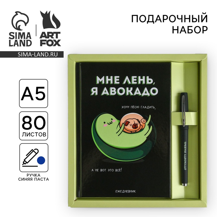 Набор ежедневник 80 л и ручка"Авокадо будни"