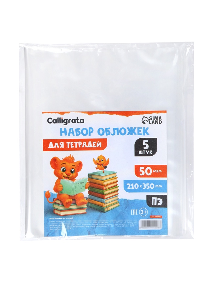 Набор обложек ПЭ 5шт 210*350мм 50мкм Calligrata, д/тетрадей