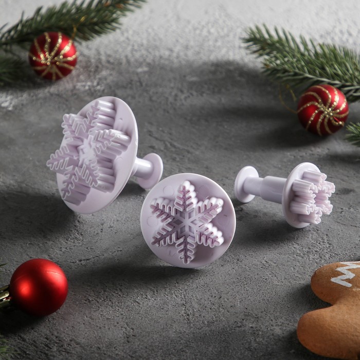 Набор плунжеров кондитерских Доляна «Снежинка большая», 3 шт, цвет МИКС