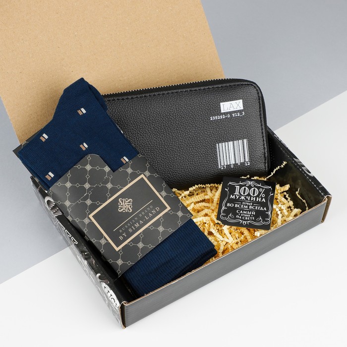 Набор подарочный, мужской «Настоящий», портмоне, носки, открытка. Адресат: Мужчине. В наборе, шт.: 3. Вид застёжки: Замок. Материал: Полиэстер, Искусственная кожа, Текстиль. Размер: 17 см x 4 см x 22 см. Размер упаковки: 17 см x 4 см x 22 см. Составляющие набора: Кошелёк, Носки, Открытка. Страна производителя: Китай. Температурное ограничение: Нет. Цвет: Чёрный, Синий. ---.(7653151)