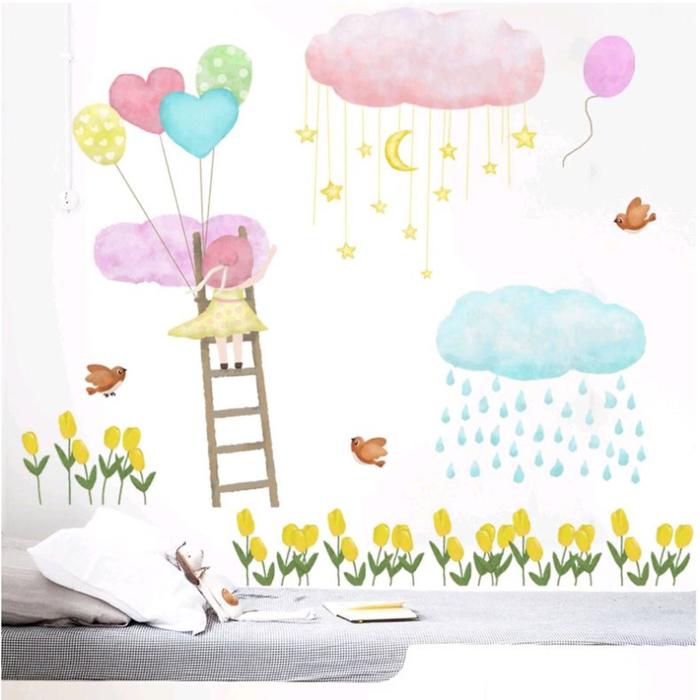 Наклейка пластик интерьерная цветная "Девочка на лестнице и тучки" набор 2 листа 30х90 см. Вид наклейки: Интерьерная. Материал: Пластик. Размер: 30 см x 90 см. Размер упаковки: 30 см x 90 см x 0 см. Страна производителя: Китай. Тематика: Детская, Природа. ---.(5512196)