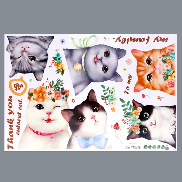 Наклейка пластик интерьерная цветная "Кошечки с цветами" 60х90 см