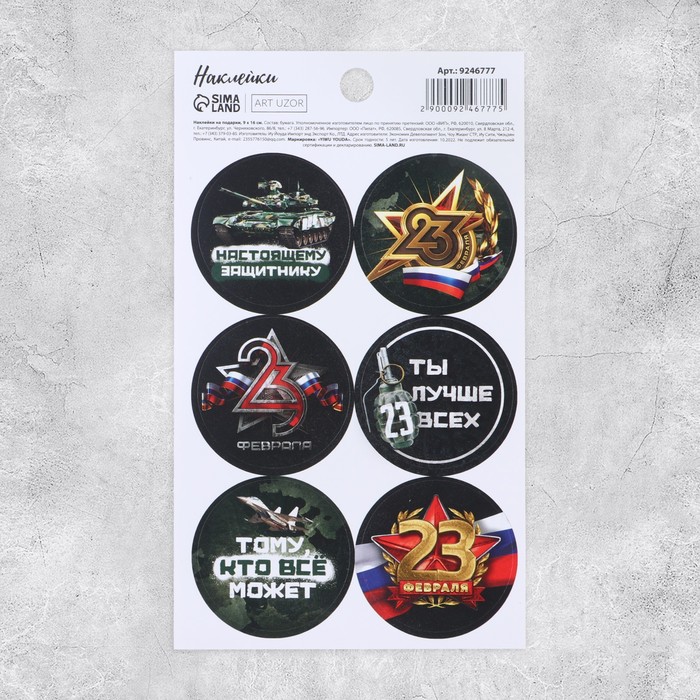 Наклейки на подарки «Защитник», 9 × 16 см (5 шт). Размер: 9 см x 16 см x 0 см. Размер упаковки: 0 см x 9 см x 16 см. Страна производителя: Китай. ---.(9246777-5p)