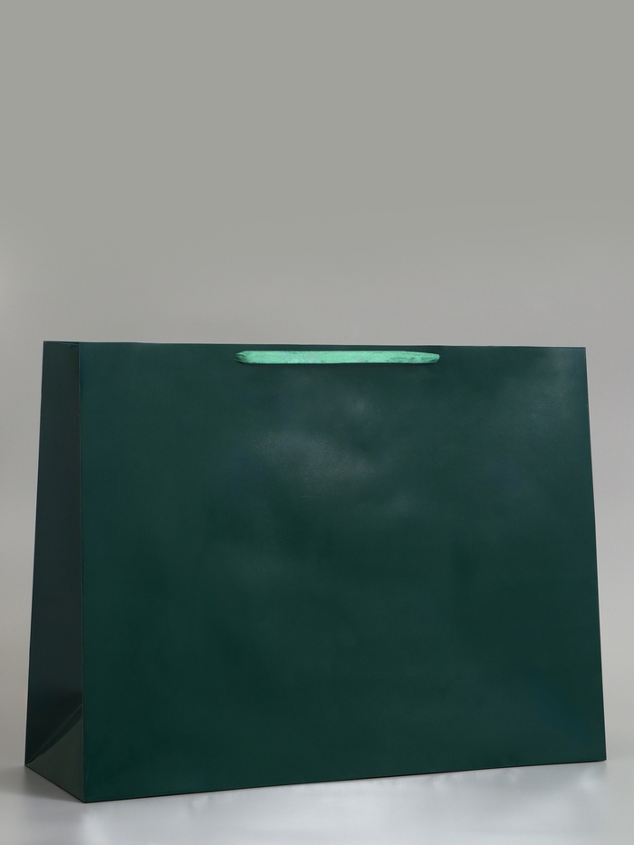 Большой ламинированный подарочный пакет «Изумрудный» (61×46×20 см) – горизонтальный пакет гигантского размера для крупных подарков. Ламинация придаёт бумаге глянцевый блеск и защищает от влаги.