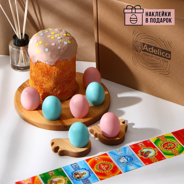 Пасхальный набор Adelica, подставка под яйцо и кулич, 2 подставки под яйцо, термонаклейки в подарок
