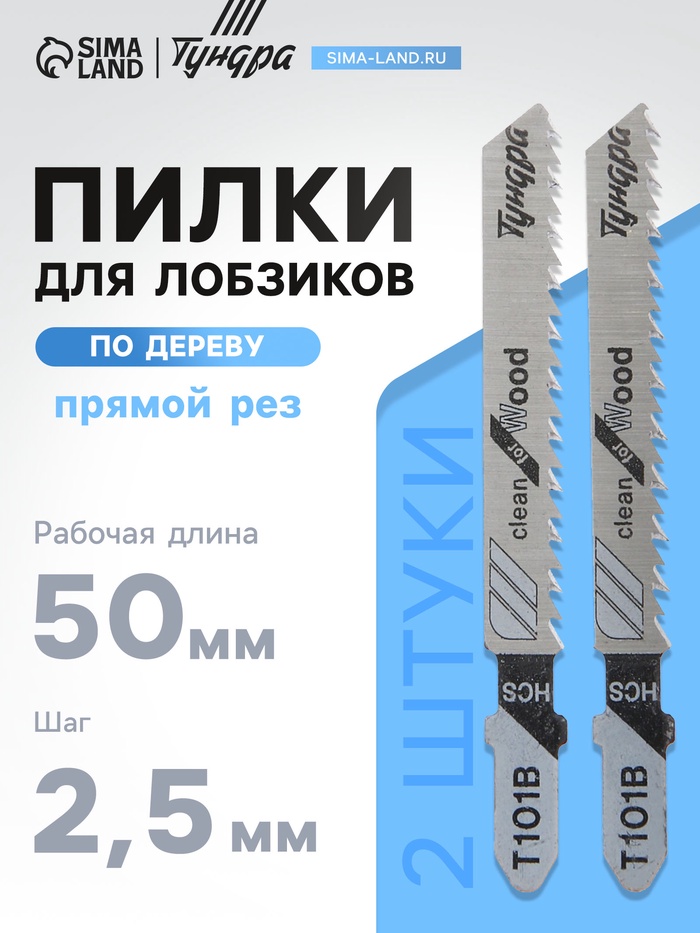 Пилки для лобзиков ТУНДРА, по дереву, прямой рез, HCS, 50/75 х 2.5 мм, 2 шт.