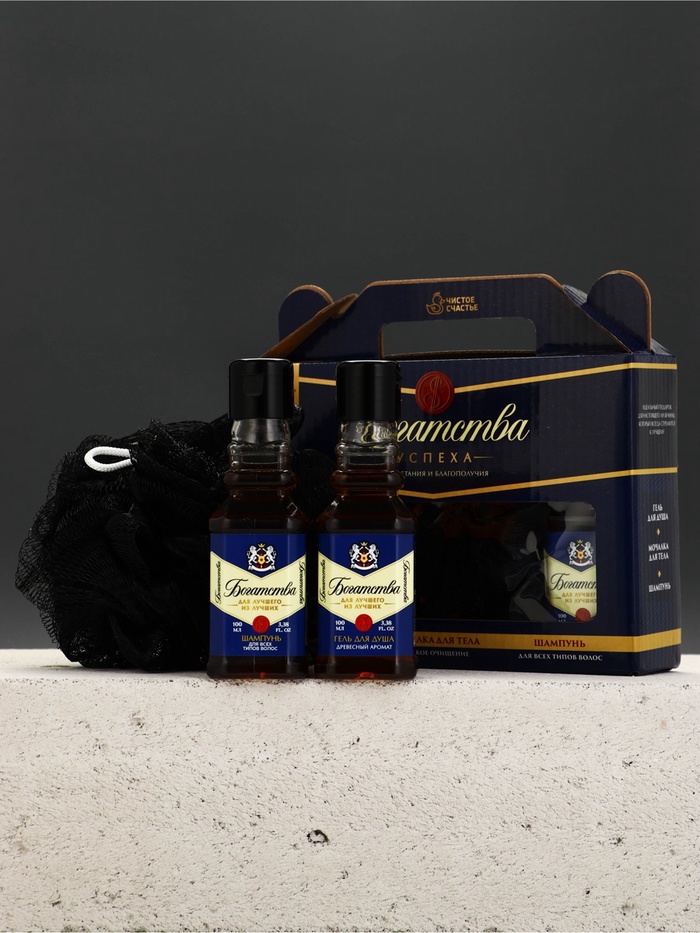 Подарочный набор мужской «Богатства», гель для душа, шампунь для волос, мочалка, Чистое счастье