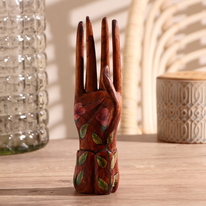Если вы занимаетесь реализацией разнообразных украшений и аксессуаров, то вам нужно наглядно продемонстрировать свой товар, представив его в лучшем виде. Подставка для колец дерево "Рука роспись" 20 см как нельзя лучше справится с этой задачей! У каждого украшения появится своё место, откуда его можно будет хорошо рассмотреть.