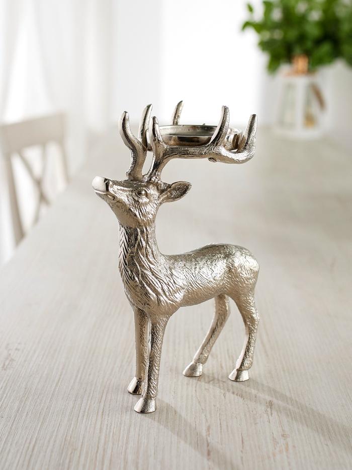 Подсвечник «Сохатый» из серебристого алюминия - эффектное новогоднее украшение для создания праздничной атмосферы. Строгие габариты 15.5×9×22.5 см делают его заметным акцентом в интерьере, а благородный серебристый цвет добавляет торжественности. Мощная фигура оленя с ветвистыми рогами станет центральным элементом вашего праздничного декора.
