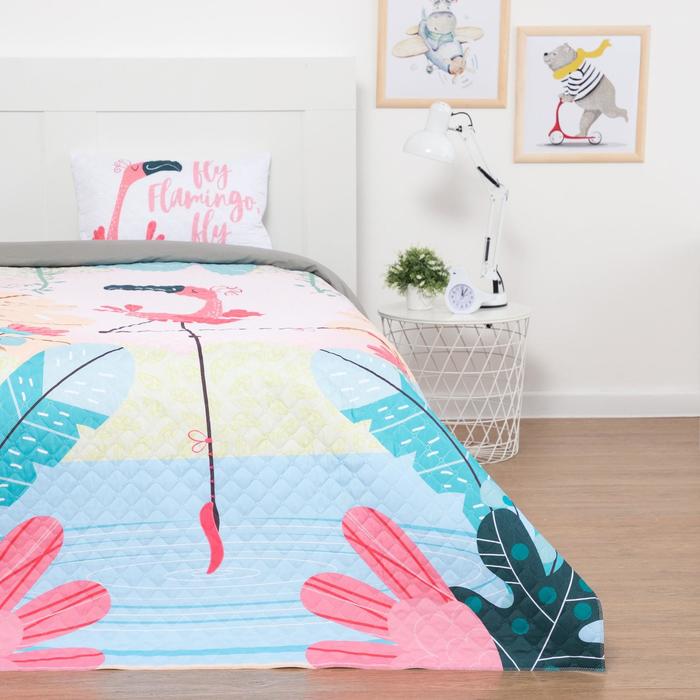 Набор Этель 1,5 сп Flamingo time, покрывало 145х210 см, наволочка 40х60 см, микрофибра