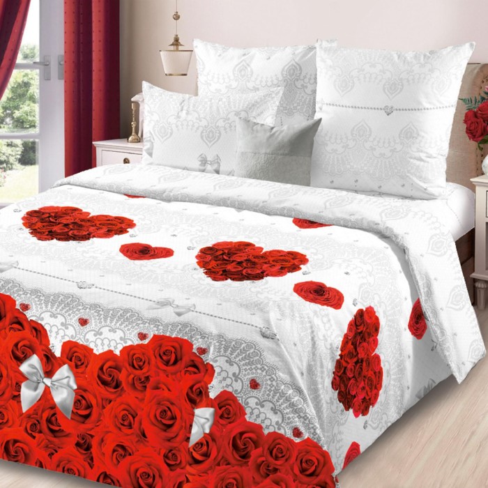 Постельное бельё 2сп ЛидерТекс Валентинка полукор 175х215, 200х220, 70х70 2шт, поплин 110гр/м хл100%