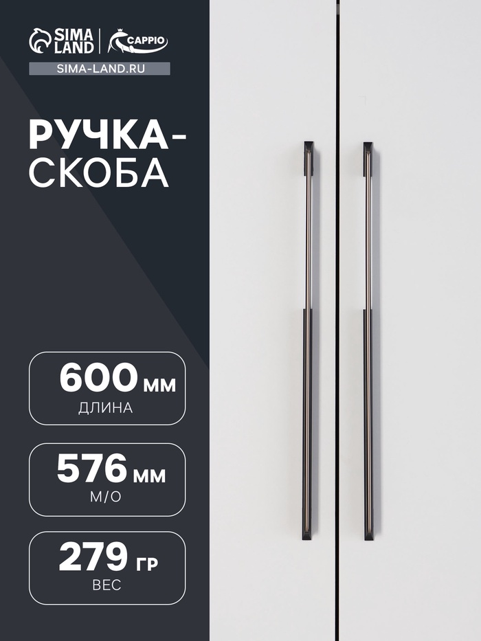Ручка скоба CAPPIO, алюминий, м/о 576 мм, цвет черный с серой вставкой