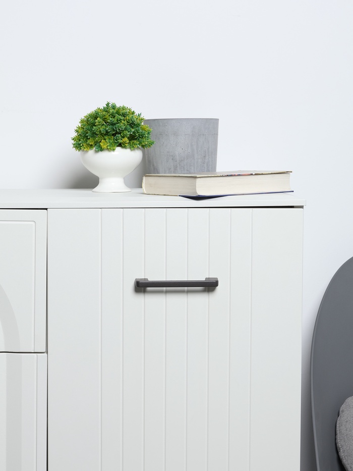 - Оптимальное межосевое расстояние: 128 мм – стандартный параметр, подходящий для большинства шкафов и ящиков. Легко устанавливается на мебель с соответствующими отверстиями, сохраняя целостность дизайна.