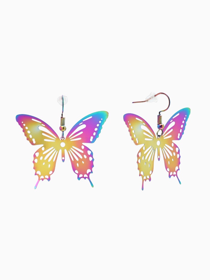Серьги металл "Бабочки" кружевные, цвет бензиновый