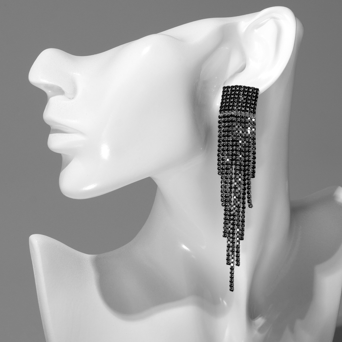Серьги висячие со стразами "Водопад" на квадрате, цвет чёрный в серебре