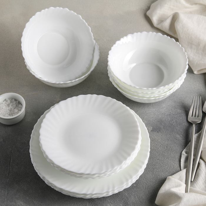 Сервиз столовый Доляна «Дива», 18 предметов: 6 тарелок d=17,5 см, d=23 см, 5×5 см, цвет белый.