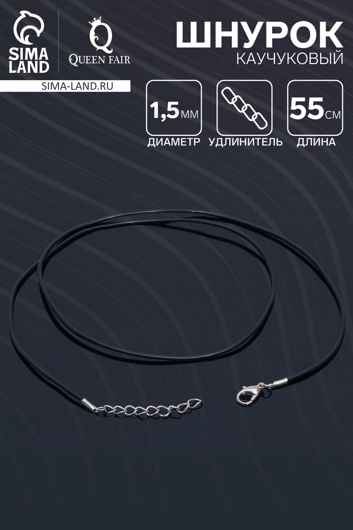 Шнурок каучуковый, не полый, 55см, d=1,5мм, цвет чёрный в серебре (10 шт)