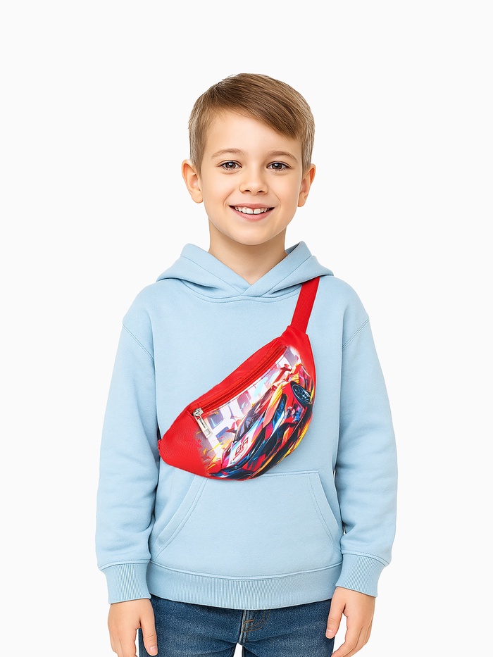 Эта красная поясная сумка создана для активных мальчиков, ценящих практичность и стиль. Она станет верным спутником на прогулках, в парке или во время встреч с друзьями, освобождая руки для игр и сохраняя важные мелочи в безопасности. Динамичный рисунок с транспортом добавляет образу энергии и индивидуальности.