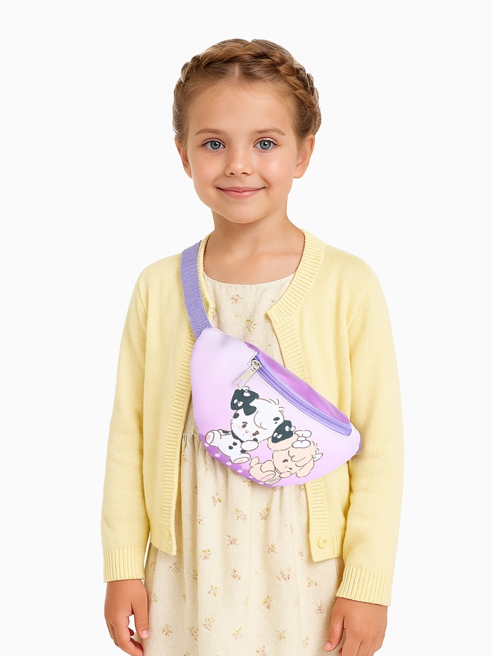 Очаровательная детская поясная сумочка в сиреневом цвете порадует вашу маленькую модницу ярким дизайном и функциональностью. Выполненная из искусственной кожи, она безопасна и вынослива, идеально подходя для активных прогулок и повседневных приключений. Один основной отдел позволяет аккуратно разместить нужные мелочи, а стильная застёжка-молния обеспечивает быстрый доступ к содержимому. Ремень легко регулируется для удобной носки, адаптируясь под любую фигуру, а забавный рисунок с изображением собачки добавляет модели уникальности и шарма.