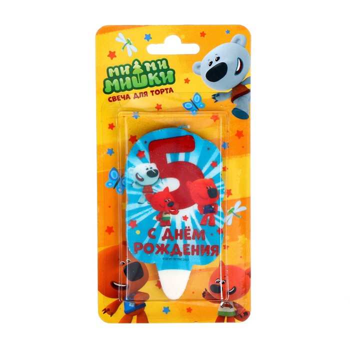 Свеча для торта со стикером «5. Ми-ми-мишки» блистер, размер 5 х 8 см