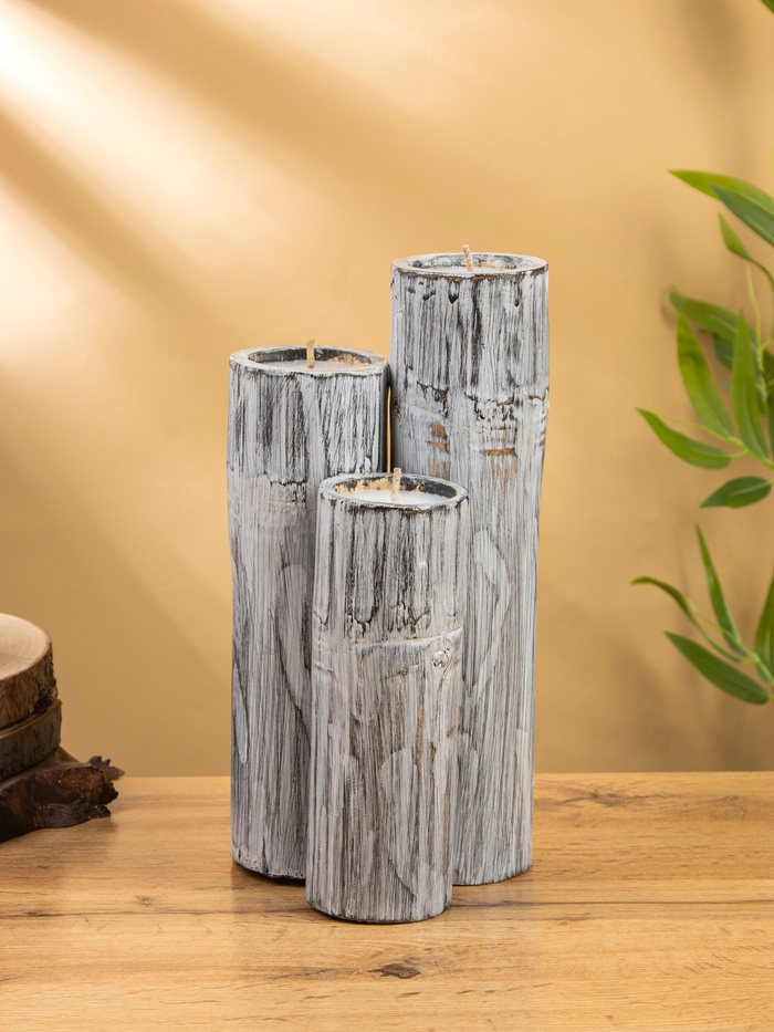 Свеча в бамбуке тройная, 15×13×30 см, 100 мл, серая
