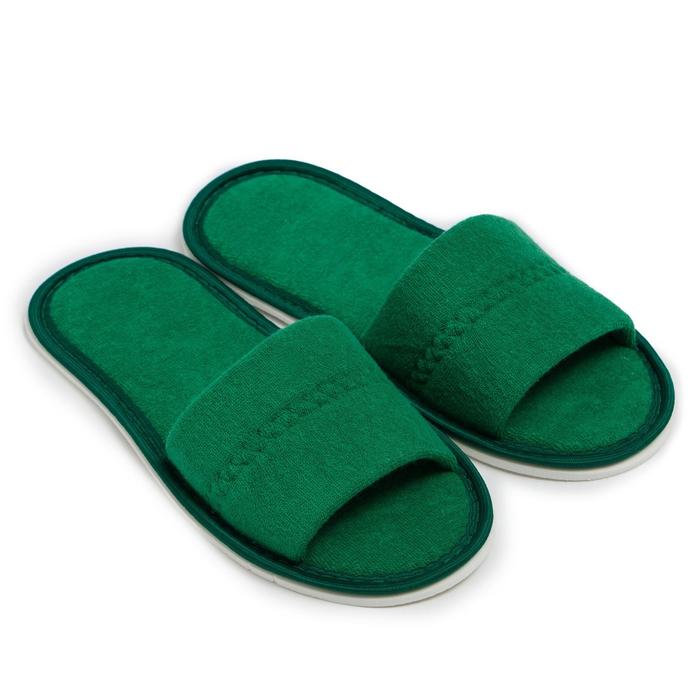 Тапочки женские, цвет зелёный, размер 36-38. Вид тапочек: Открытые. Для кого: Для женщины. Материал верха: Текстиль. Размер обуви: 36, 38. Размер упаковки: 2 см x 11 см x 26 см. Страна производителя: Россия. Температурное ограничение: Нет. Цвет: Зелёный. ---.(7114230)