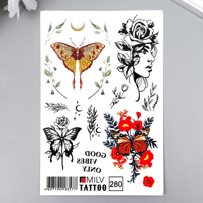 Татуировка на тело "Бабочки" 10х15 см