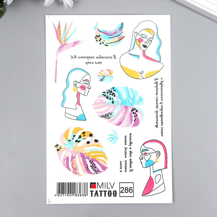Татуировка на тело "Девушки, листочки" 10х15 см
