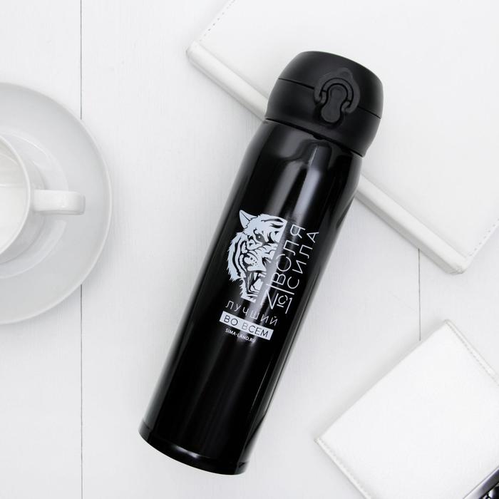 Термос "Лучший", черный 400 мл. Вид термоса: Туристический. Время сохранения тепла/холода, ч: 2. Материал: Пластик, Нержавеющая сталь. Назначение: Для напитков. Наличие дополнительной ёмкости: Нет. Наличие столовых приборов: Нет. Объём, л: 0,4. Размер: 22 см x 6 см x 6 см. Размер упаковки: 7 см x 7 см x 23 см. Рисунок: Да. Страна производителя: Китай. Тип горлышка: Стандартное. Цвет: Чёрный. ---.(5249488)
