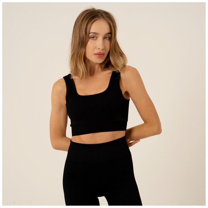 Топ спортивный на широких бретелях, размер L, цвет черный